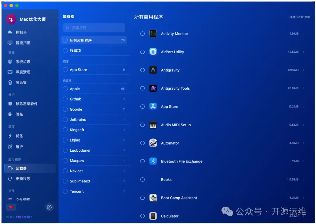 这个功能解决了Mac用户的一个经典痛点:卸载不彻底。常规的卸载方式,总会在系统的各个角落留下偏好设置、缓存、日志等“小尾巴”。MacOptimizer的深度卸载,则能将这些关联文件全部扫描出来,并清晰地展示给用户。你可以自主勾选需要清理的项目,真正做到将应用痕迹一扫而空,这是系统自带功能难以企及的。