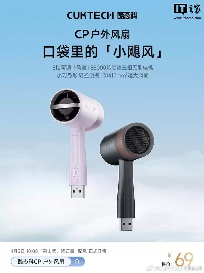关注户外装备的朋友们,最近又有新选择了。酷态科为其颇受好评的CP户外风扇,带来了两款全新配色——“暮山紫”与“曜石黑”。目前,这两款新品已经在京东平台正式上架,售价定为69元。