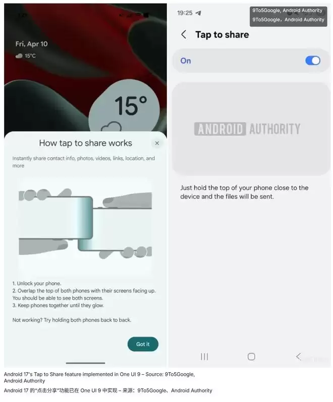 三星One UI 9将整合安卓17碰一碰分享功能,手机一碰即传
