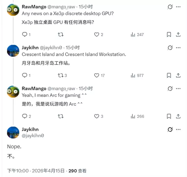 英特尔Xe3P架构新动向:Crescent Island剑指AI与专业市场 2026年4月16日,知名行业爆料人Jaykihn披露了英特尔图形产品线的最新战略。基于下一代Xe3P图形架构、代号为“Crescent Island”的全新独立显卡系列,其市场定位已明确:并非针对主流游戏玩家,而是精准聚焦
