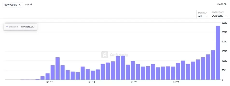 市场传来一个明确信号:以太坊网络在2026年第一季度迎来了前所未有的用户增长浪潮,新用户数量一举突破历史记录。