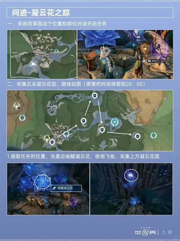 首先,我们来看第一张全景图。这张图完整呈现了“问迹凝云花之踪”任务的起始区域与整体环境布局,是玩家开启本次探索解谜的导航地图。理解初始场景的结构,是高效完成后续步骤的基础。