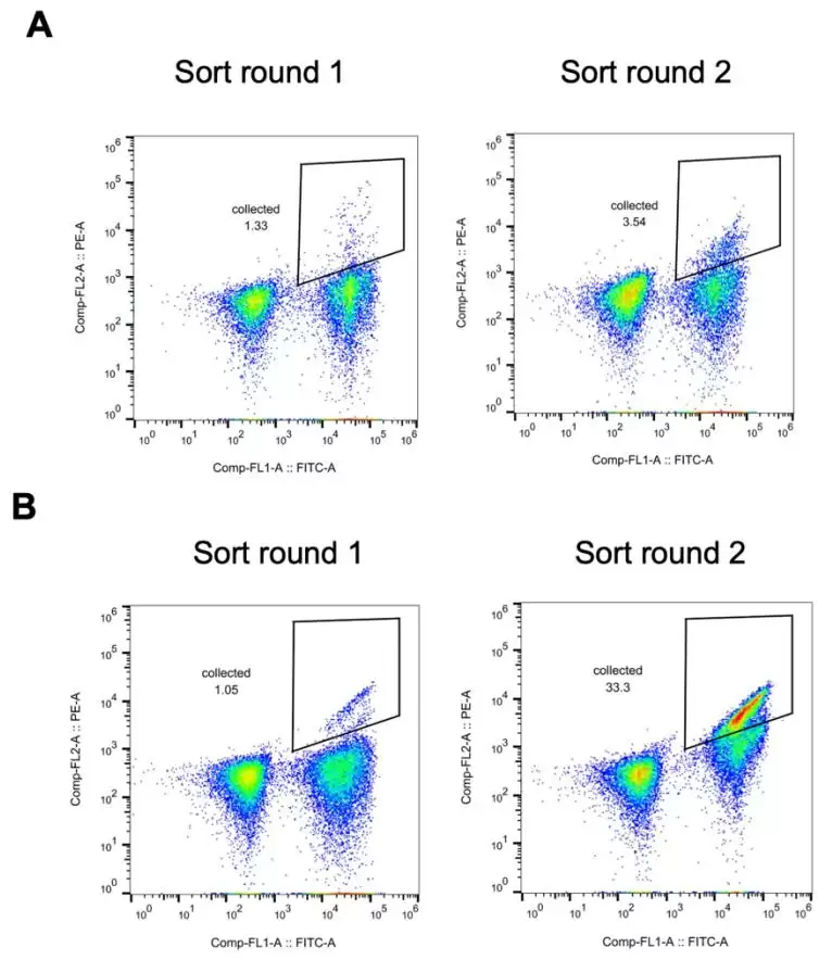 研究团队通过单点饱和突变筛选出有益突变,并构建组合突变体文库进行酵母展示筛选,成功获得了亲和力显著提升的变体(见下图)。