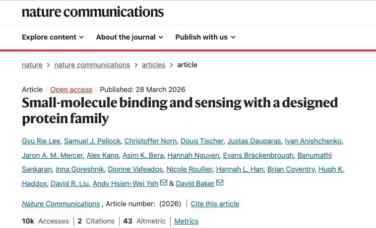 相关研究以《Small-molecule binding and sensing with a designed protein family》为题,发表在《自然·通讯》上。