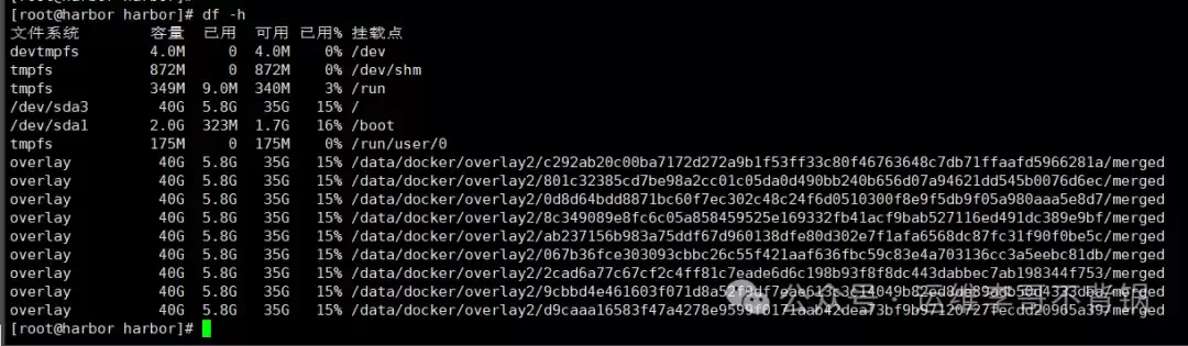 执行 df -h 或 docker info 命令,可以直观看到 Docker 的数据根目录已变更至新的存储位置: