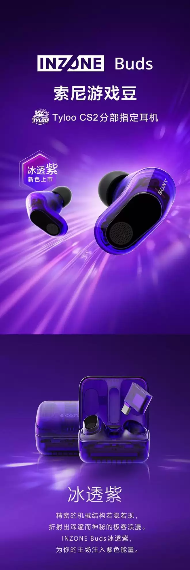 索尼INZONE英纵Buds“游戏豆”耳机上架预售:冰透紫配色,1199元