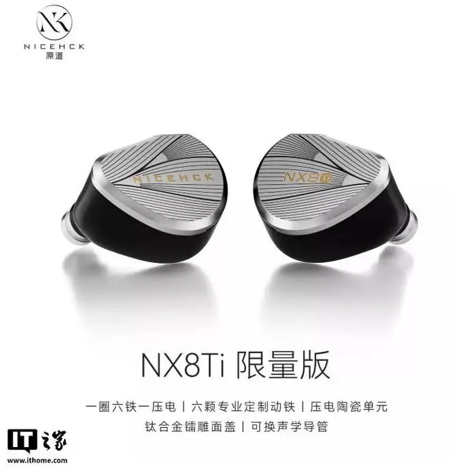 原道NX8Ti圈铁混合耳机上架:八单元架构,限量发售 最近,音频圈里有个消息挺值得关注:原道在京东上架了一款名为NX8Ti的圈铁混合入耳式耳机。这款产品采用了“一圈六铁一压电”的八单元架构,定位颇为讲究,全球限量3888套,官方定价定在了1999元。 先说说外观和基础配置。这款耳机的面板用的是钛合金