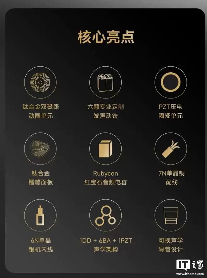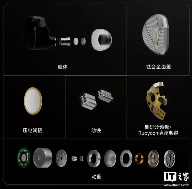 当然,对于一款耳机而言,核心终究在于声音单元。NX8Ti的“一圈六铁一压电”架构,具体来看是这样的:一颗10mm的镀钛振膜双磁动圈单元负责低频基底,两颗定制的中高音动铁单元,再加上四颗专门负责高音与极高音区的动铁单元。而那个“一压电”,指的是一颗PZT压电陶瓷单元,这类单元常被用来提升超高頻的延伸和细节表现。官方对其声音的描述是“声场规整开阔,三频能量分布均衡,人声位置适中”,并称其能适配多种音乐风格。这套组合拳下来,目标显然是追求全频段的高解析力和均衡听感。