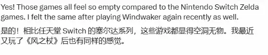 这一观点迅速获得了海量玩家的认同与热议。许多玩家反馈,在深度体验了塞尔达系列所构建的那种高度自由、充满物理与化学交互灵性的动态世界后,再回头审视许多传统开放世界设计,难免会察觉到一种“互动上的空洞感”与“探索上的公式化”。甚至有资深玩家回溯到更早的《塞尔达传说:风之杖》,也明确感知到了在“世界活性”与“玩家自主性”上的体验代差。