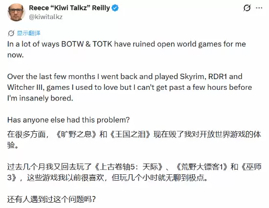 被《塞尔达》惯坏!业内人士感叹其他开放世界游戏太无聊
