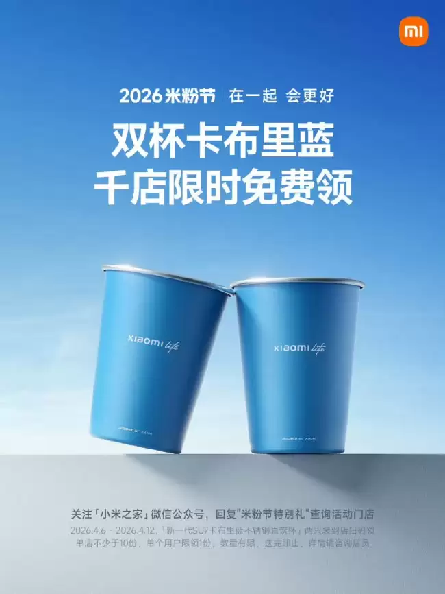 全国小米之家限时免费领取“卡布里蓝直饮杯”,先到先得! 米粉朋友们注意了!小米近期在全国范围的小米之家门店,推出了一个诚意十足的免费福利活动。从今天起,只要前往指定的小米之家,就有机会免费领取一套“小米 life 卡布里蓝直饮杯”(两只装)。活动将持续到4月12日,不过需要特别提醒大家,每家门店的到