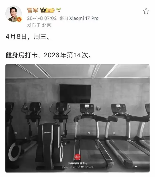 时隔两个多月雷军再次打卡健身房:网友温馨提醒别太劳累 今日清晨七时许,小米集团创始人雷军再次于社交平台分享了自己的健身动态。关注雷军的网友或许已经发现,这已是他在2026年度第十四次公开进行健身打卡。 此次打卡引发了广泛关注,主要因其间隔时间较长。回顾上一次雷军发布健身相关状态,还是在两个多月前的2