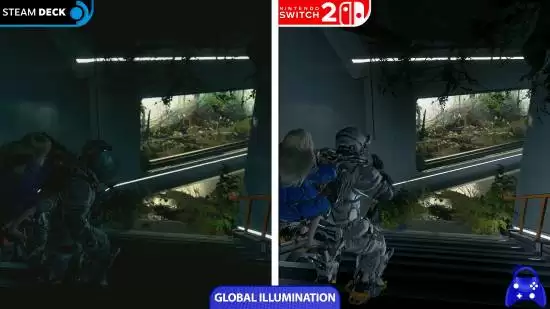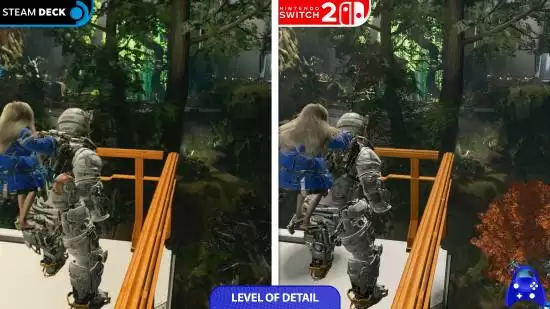 除了帧率,画面质量的稳定性更是衡量游戏体验的关键。测试中发现,Steam Deck 在渲染部分复杂场景时,会出现较为明显的闪烁与画面伪影,这在一定程度上影响了游戏的视觉沉浸感。反观 Switch 2,其画面输出始终稳定,未出现此类影响观感的问题。
