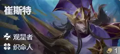 羁绊:崔斯特同时拥有“观星者”与“织命人”两大职业羁绊。观星者的特性通常与技能机制或战场命运相关联,而织命人则往往涉及整场对局的阵容联动与命运脉络。这两种羁绊的结合,使得崔斯特成为一个能在战场上创造多重连锁战术效果的关键角色。