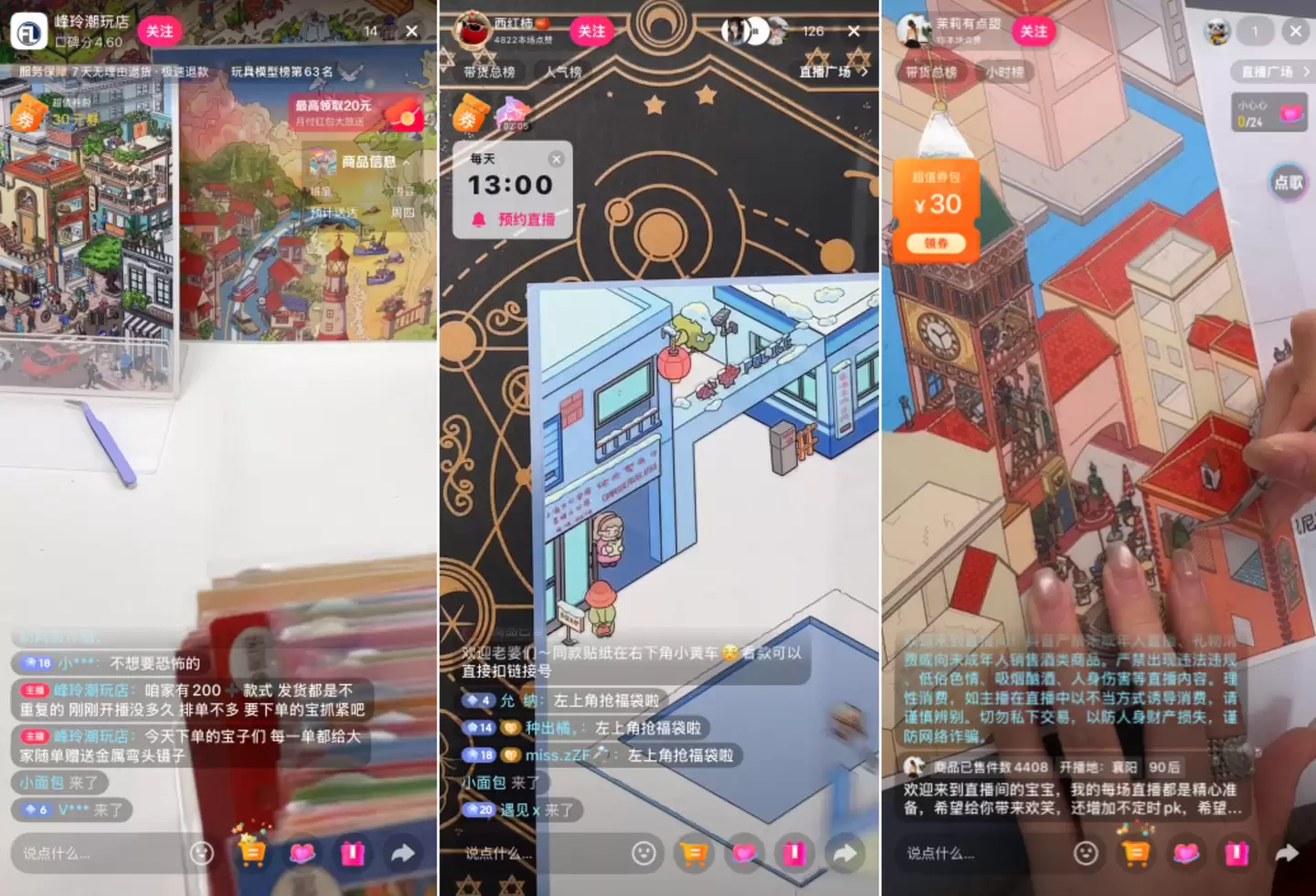 一种是购买材料包自行创作,价格从几元到数百元不等,抖音上销量最高的TOP10产品中,有6款销量均已突破10万件。另一种消费则源于直播种草——主播展示造景贴纸制作的全过程,观众在“云体验”这种沉浸式解压感的同时,就被成功转化下单。