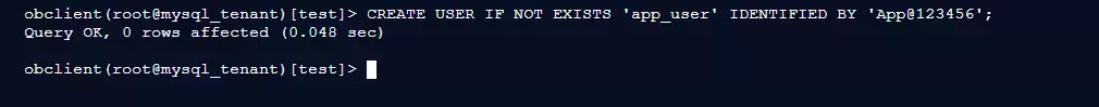 -- 创建用户app_user,密码设置为App@123456(生产用复杂密码)CREATE USER IF NOT EXISTS ‘app_user’ IDENTIFIED BY ‘App@123456’;