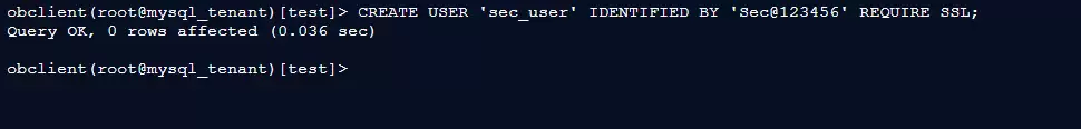 -- 创建用户并要求必须使用SSL连接CREATE USER ‘sec_user’ IDENTIFIED BY ‘Sec@123456’ REQUIRE SSL;
