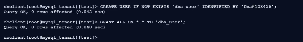 我们延续之前的环境,登录已经创建好的mysql_tenant租户。使用管理员账号执行以下命令: