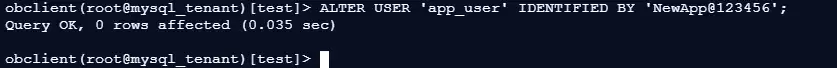-- 修改app_user密码ALTER USER ‘app_user’ IDENTIFIED BY ‘NewApp@123456’;