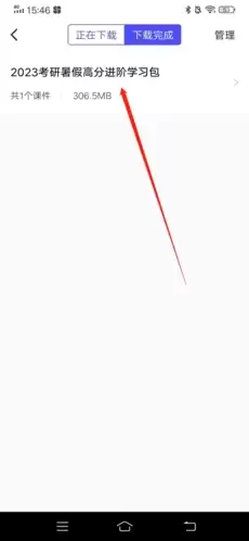 点击进入「我的下载」界面后,你会看到「下载完成」这一分类选项。所有你成功下载到本地的考研课程视频、讲义资料都会集中显示在此处。请直接点击「下载完成」进入详情列表。