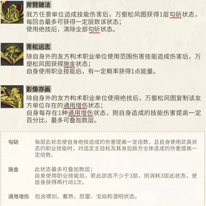 被动技能是决定器者强度上限的关键。万壑松风图的被动会进一步强化其在两种形态下的专属作战能力,并为形态转换过程提供额外的属性收益或效果。要完全发挥他的全部潜力,深入理解被动效果的细节至关重要。
