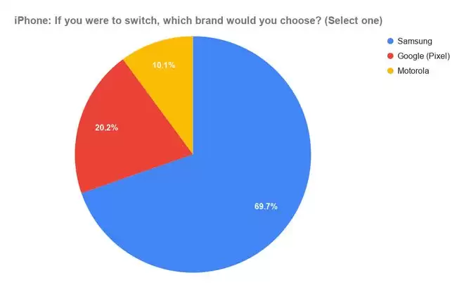 (上图:美国iPhone用户调查,如果要购买新手机,可能选择的品牌)