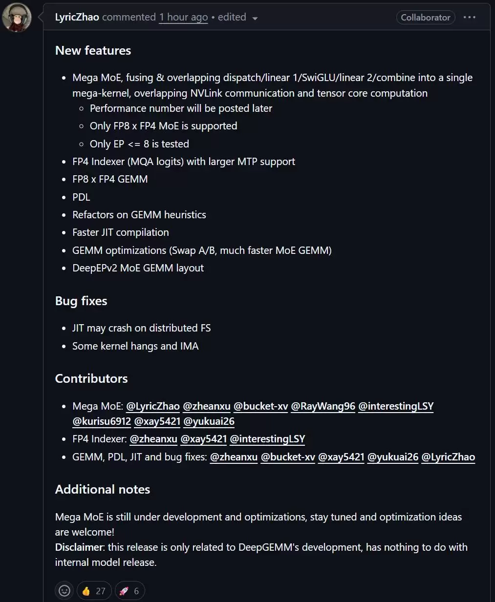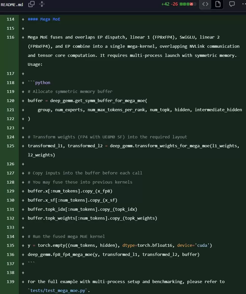 然而,正是这次看似常规的代码更新,露出了一个关键的新名词:Mega MoE。