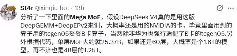 另外,根据X网友St4r的解读,此次更新中透露的某些技术细节,也可能暗示了DeepSeek训练所使用的硬件,仍然包含了英伟达最新的顶级B系列AI加速卡(而非过去几个月传闻中提到的国产训练卡)。