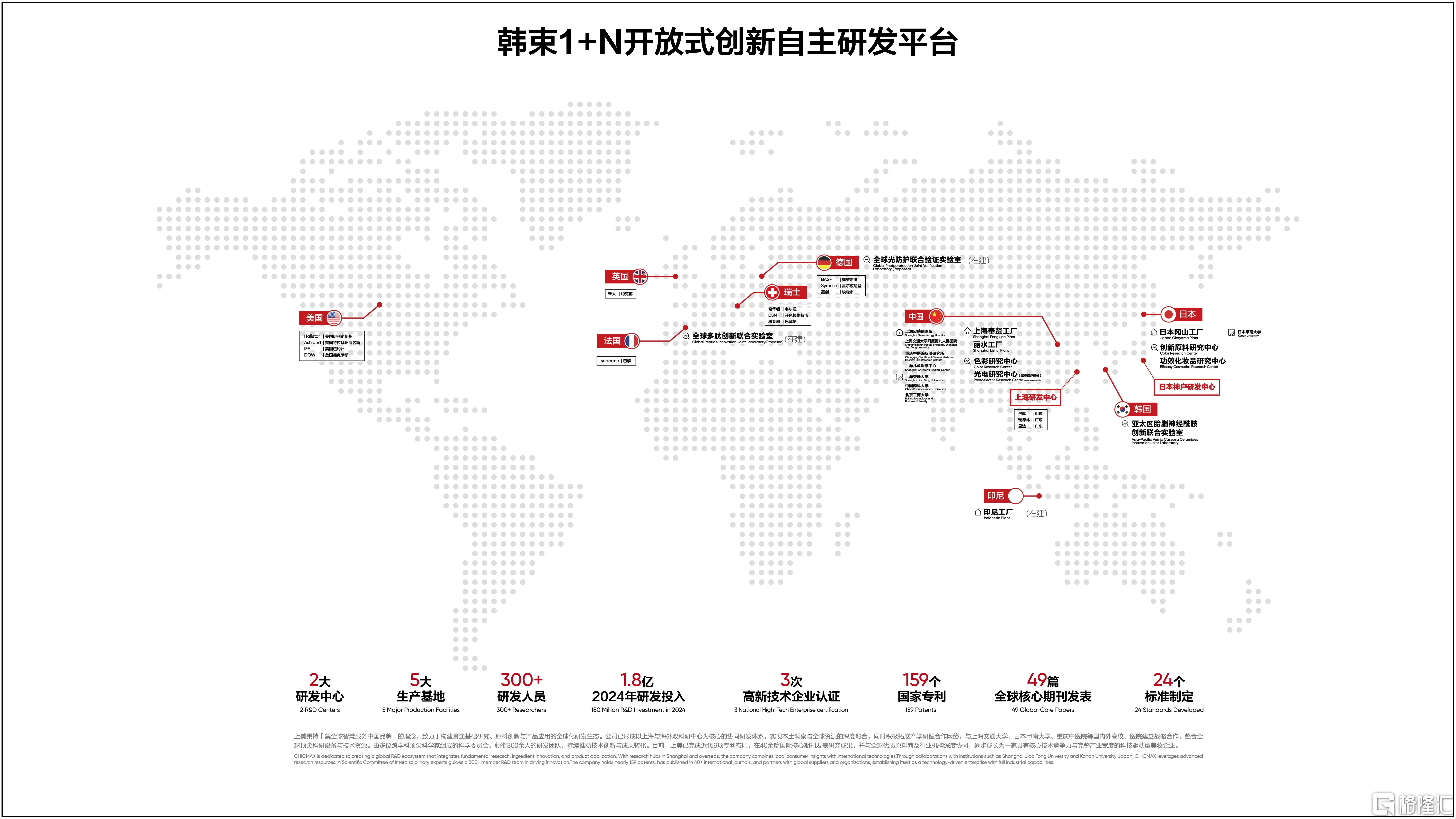 更具战略意义的一步发生在2016年——韩束成为国货美妆中首个在海外建立规模化研发中心的品牌。这一步“走出去”,目标非常明确:锚定全球前沿科技,并将其内化为自身的产品力。