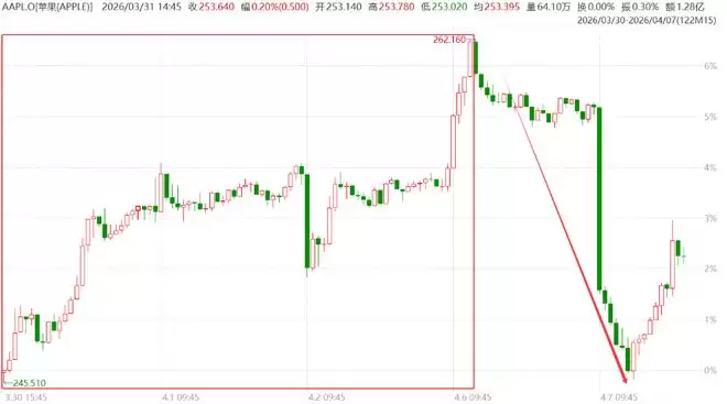 (苹果一度将此前四连涨的累计涨幅悉数回吐)