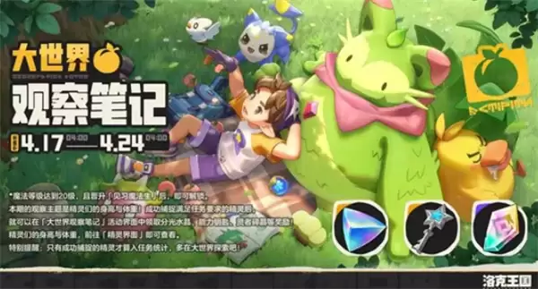 各位训练师请注意,《洛克王国世界》备受期待的限时活动“大世界观察笔记”现已火热开启!本次活动窗口期为2026年4月17日04:00至4月24日04:00,为期整整一周,为所有玩家提供了充足的探索与挑战时间。