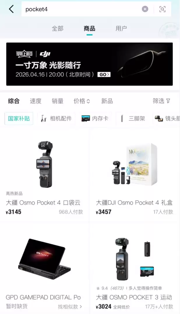 大疆官方正式入驻得物App,Pocket 4新品现货首发