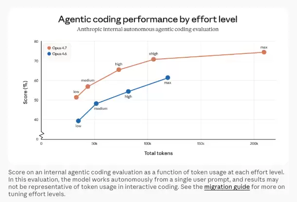 用户可以通过调整努力级别参数、设置任务预算,或者在提示词中要求模型回答更简洁来控制token消耗。Anthropic的内部测试显示,在其内部的编码评估中,所有努力级别的token使用效率均有所提升。