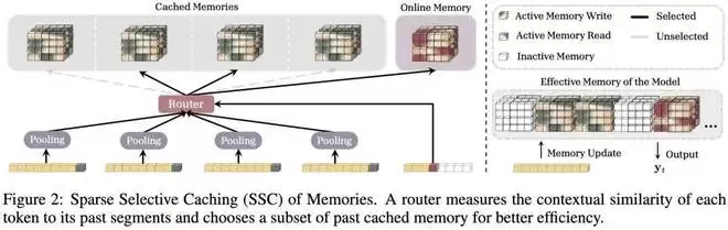 3. 稀疏选择性缓存(Sparse Selective Caching, SSC):前述两种方法似乎印证了“没有免费午餐”的定律——必须在增长的有效记忆和恒定的解码成本间权衡。