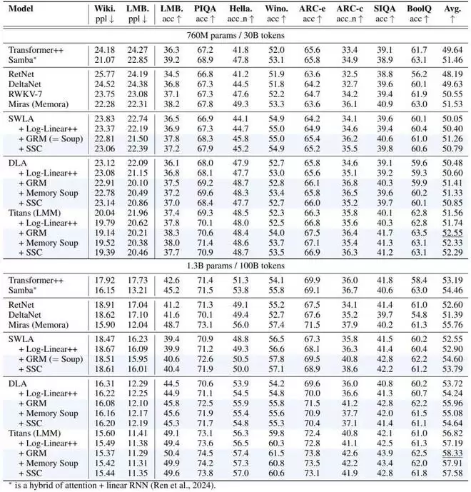 首先,MC具备良好的通用性,可以作为一个即插即用的框架,灵活集成到多种现有的循环架构中,例如线性注意力模型或作者之前提出的Titans深度记忆模型。