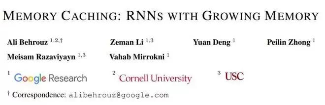 论文:《Memory Caching: RNNs with Growing Memory》论文链接:https://arxiv.org/abs/2602.24281