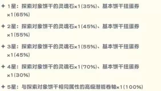 当前版本的星座探险主要包含三大功能模块:饼干派遣任务、探险任务系统以及“可可滴露的饼干探索”。我们先来讲解资源获取最直接的“可可滴露的饼干探索”。在此模式中,你可以派遣拥有的“稀有”品质饼干进行探索,但请注意,最新推出的“超稀有”饼干无法被选中。探索奖励的品质与派遣饼干的星级直接挂钩。例如,派遣一星稀有饼干,有35%的概率获得该探索目标对应的“饼干零食”,同时有65%的概率获得“基本饼干扭蛋券”。当你派遣更高星级的饼干时,获得零食的概率将显著提升,而获得扭蛋券的概率则会相应下降。玩家可以根据自身当前最紧缺的资源类型(是强化饼干还是抽取新饼干),来灵活选择派遣哪位稀有饼干及其星级,实现精准资源规划。