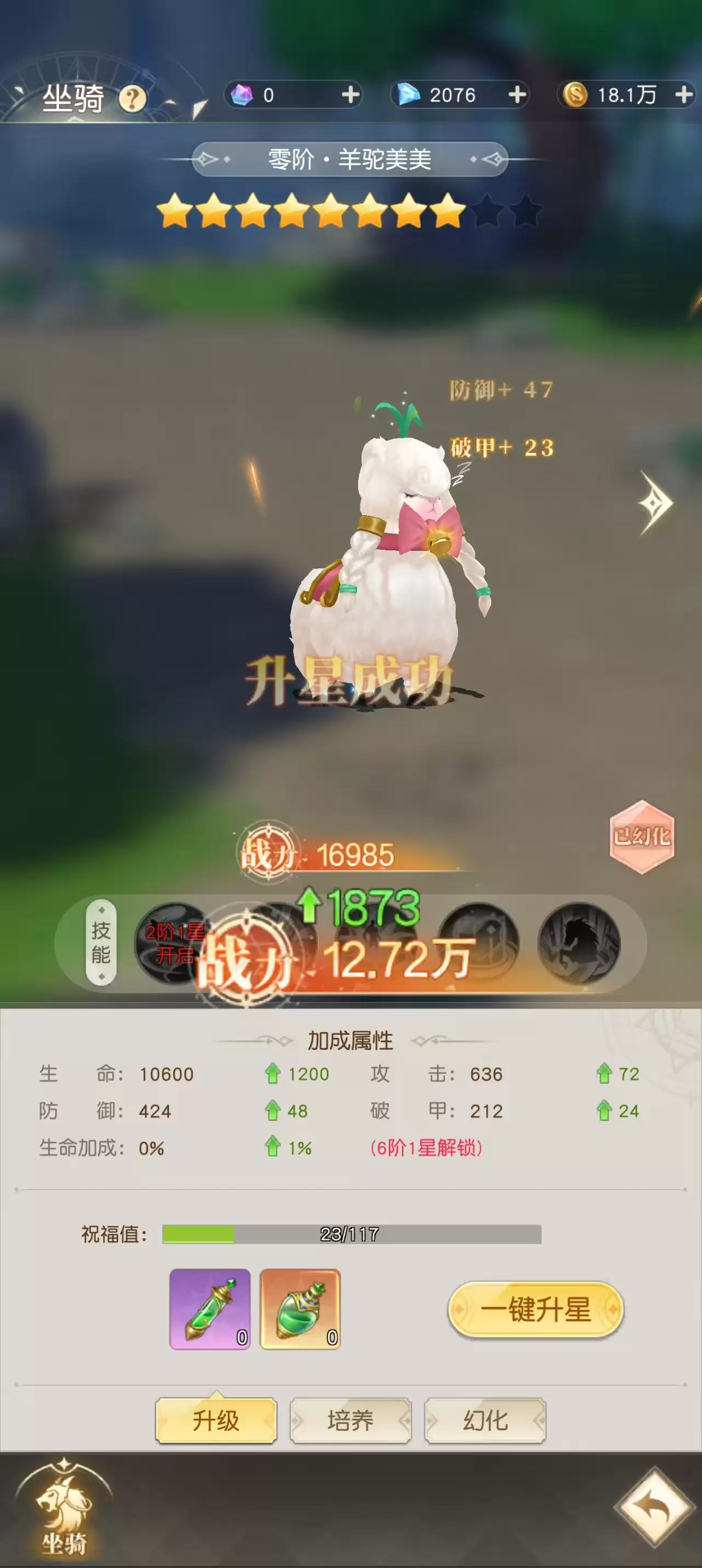 谈及个性化体验,“**坐骑幻化**”系统无疑是《星神纪元》中彰显个性与魅力的绝佳设计。该系统的精妙之处在于,你可以在**完全保留**现有坐骑所有属性、星级与培养成果的前提下,随心所欲地更换为任何已收集的坐骑外观。无论是钟爱初始那只憨厚可爱的羊驼,还是渴望驾驭造型霸气拉风的**限定坐骑**,幻化功能都能满足你的收藏癖与审美追求,真正实现“战力与颜值,我全都要”的梦想。
