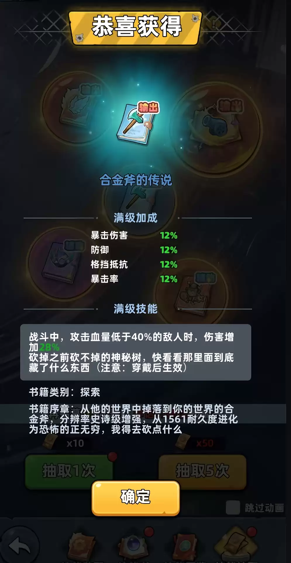 在宝箱周围,通常还会有精英怪物驻守。清理掉守卫,使用钥匙打开宝箱,即可成功获取“合金斧的传说”。拾取瞬间,该技能便会自动加入你的技能库。