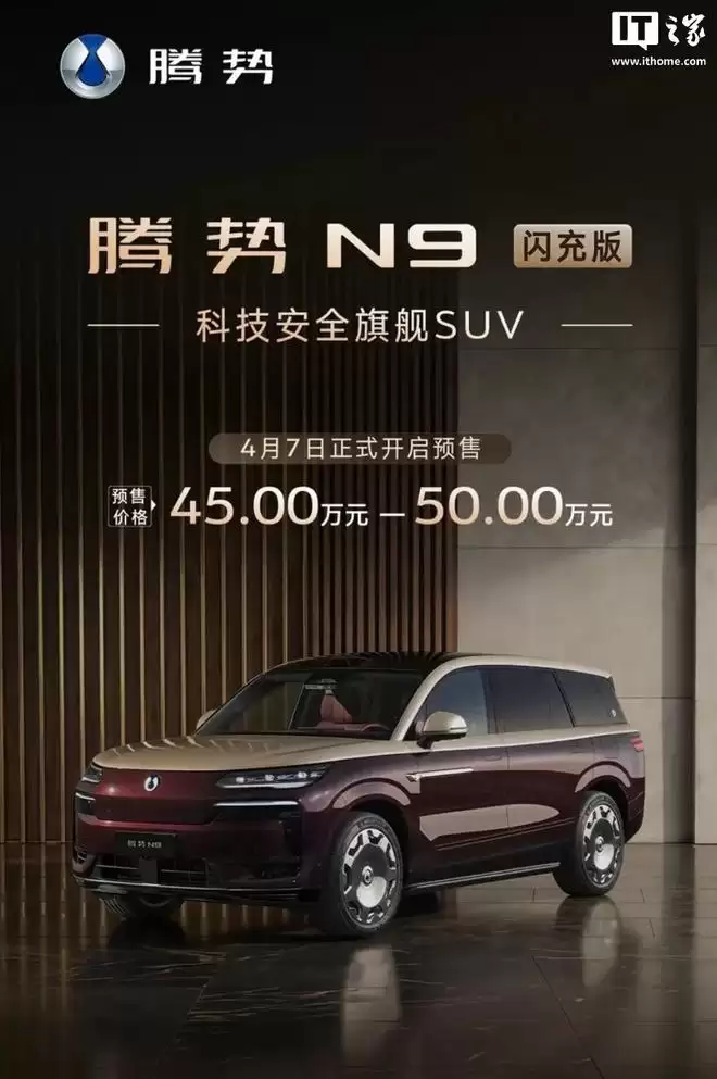 比亚迪腾势N9闪充版车型预售,45万元-50万元