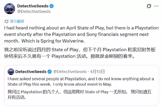 PlayStation发布会动态更新:四月无望,五月可期 关于PlayStation下一场State of Play发布会的具体时间,近期已成为游戏社区热议的焦点。最新情报显示,玩家们可能需要调整一下期待的时间表。知名游戏界内部人士DetectiveSeeds通过其社交渠道发布了更新,为这场等待带来