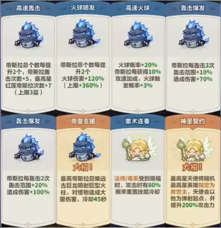 大招“帝皇支援”的释放时机颇有讲究,在前期资源有限时不必强求频繁使用。与之最佳搭配的天使技能,推荐携带“神圣契约”与“奥术连奏”,这套组合能提供高达80%的概率重置技能冷却,实现近乎全程覆盖的高频增益效果,实战体验将截然不同。