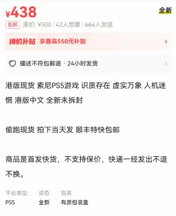 更令人震惊的是,在国内如闲鱼等二手交易平台,通过搜索“识质存在 偷跑”、“识质存在 PS5 现货”等关键词,已能发现多个卖家提供所谓“提前发货”服务,售价普遍高于预期发售价。这表明大量实体盘已脱离官方发行管控,进入不受约束的地下流通环节。