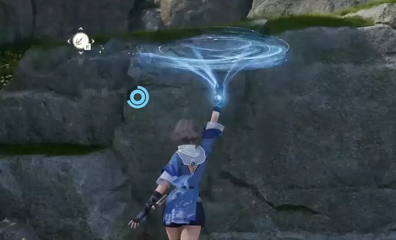 接下来,请将地图视角转向左上方,定位到“飞渡遗迹”探秘点。从刚才的木制建筑顶端跃下,召唤滑板向西北方向快速滑行。这个探秘点的挑战回报非常丰厚,完成后能一次性获得两枚赋神令,即本攻略中的第二枚和第三枚。挑战开始后,记得先向右移动,站到升起的石板正中央,它会将你送至下一个平台。稍作等待,搭乘下一块移动石板,途中别忘了顺手收集沿途的河道游灵。之后使用钩索荡至对面平台,连续跳过两块石板,目标赋神令就在前方。收集完成后先别离开,向右转身跳至对面平台,开启最终宝箱,整个探秘挑战才算完美结束。