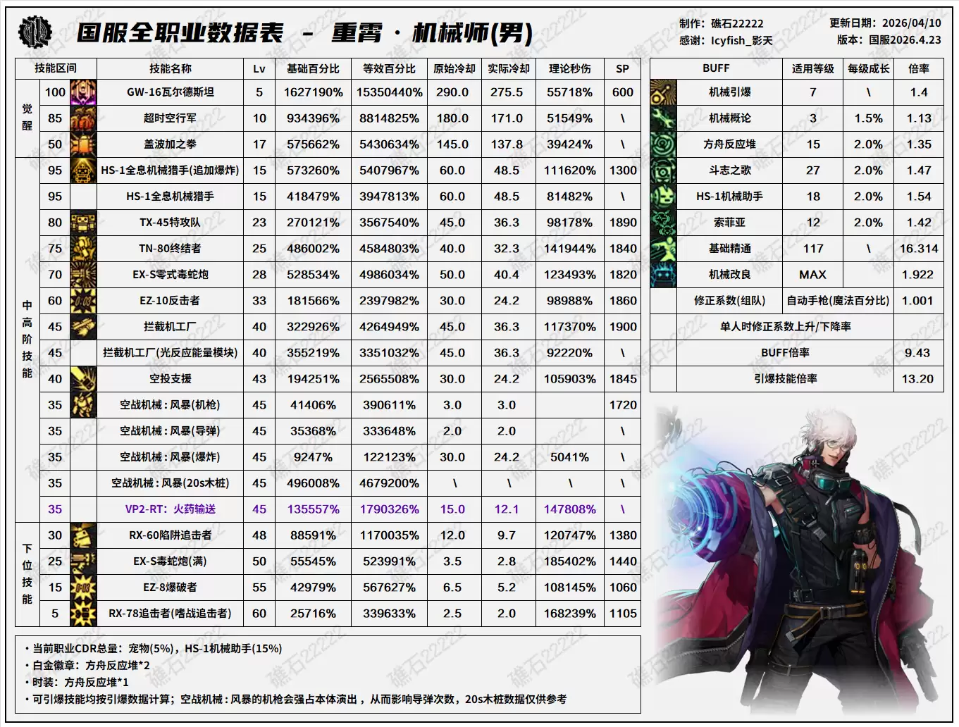 各位机械战神玩家们,备受关注的千海天版本职业平衡数据现已公布。本次更新对男机械师的技能体系进行了针对性调整,下面我们将通过具体数据变化,为您深度解析其技能改动与实战影响。