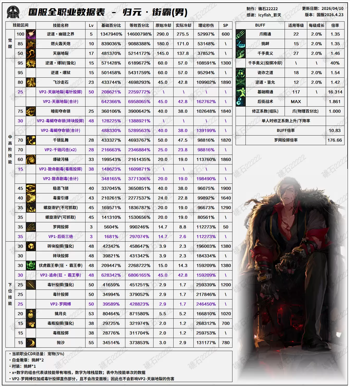 首先,我们聚焦于男街霸的标志性投掷系技能。“毒瓶”与“毒针”的基础伤害获得了稳定提升,这使得它们在技能循环中的填充伤害更加可观,持续输出能力得到夯实。然而,本次改动的重中之重在于两大核心输出技能——“血色风暴”与“天崩地裂”。根据官方数据,“血色风暴”的多段攻击伤害比率整体提升了约8%,而“天崩地裂”的爆炸中心伤害更是大幅增强了12%。对于已经装备成型的玩家而言,这意味着整套连招的爆发伤害将获得显著提升,实战中的斩杀线更为明确。