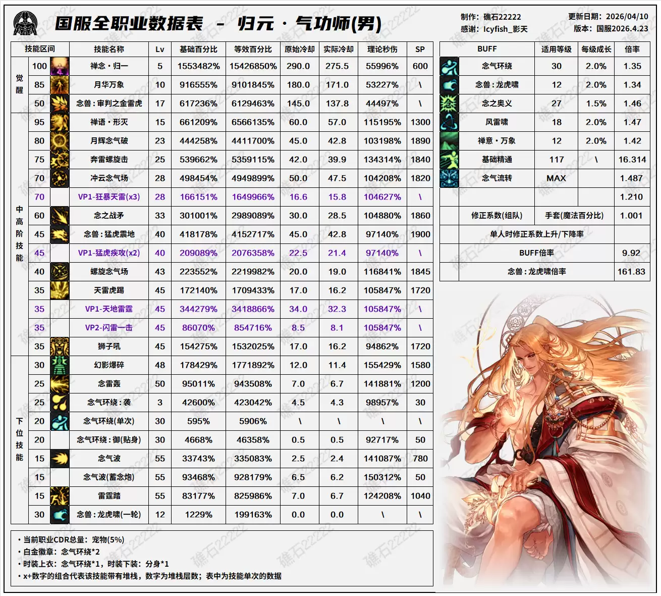 谈及爆发体系,【念兽:龙虎啸】与【冲云念气场】的改动至关重要。龙虎啸的技能攻击力百分比得到了优化调整,在激活状态下,不仅普通攻击与技能衔接的手感更加顺滑,其伤害转化效率也显著提升。而作为关键脱手控制兼输出技能的冲云念气场,其多段攻击的频率有所加快,整体伤害百分比同步上调。这意味着该技能在实战中能更快、更完整地打出全部伤害,爆发效率更高。