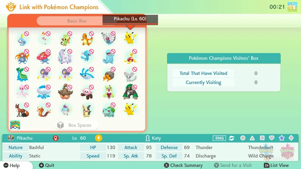 界面会清晰列出所有宝可梦。请注意,带有红色禁止标志的宝可梦表示其未被《Pokemon Champions》图鉴收录,暂时无法传送。从符合条件的宝可梦中,挑选出你心仪的成员,然后按下Y键(Switch版)或对应按钮选择“送去访问”。等待传送完成后,即可关闭Home并启动《Pokemon Champions》。