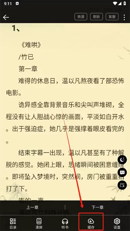 在阅读页面中,轻触屏幕中央区域,底部或侧边会弹出阅读设置工具栏。请在其中找到并点击代表离线下载功能的“缓存”图标或按钮,这是实现小说下载的关键操作。