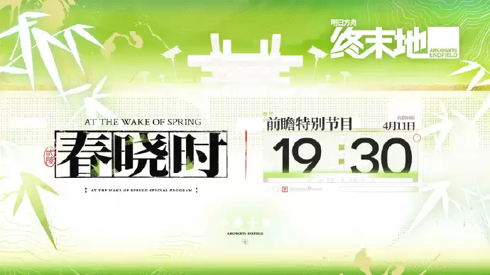 备受期待的《明日方舟:终末地》「春晓时」版本前瞻特别节目,已确定将于4月11日(本周四)晚19:30正式开启直播。